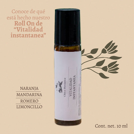 Roll On VITALIDAD INSTANTÁNEA Naranja, Mandarina, Romero, Limoncillo. Energía y Ánimo. Remedio Herbolario